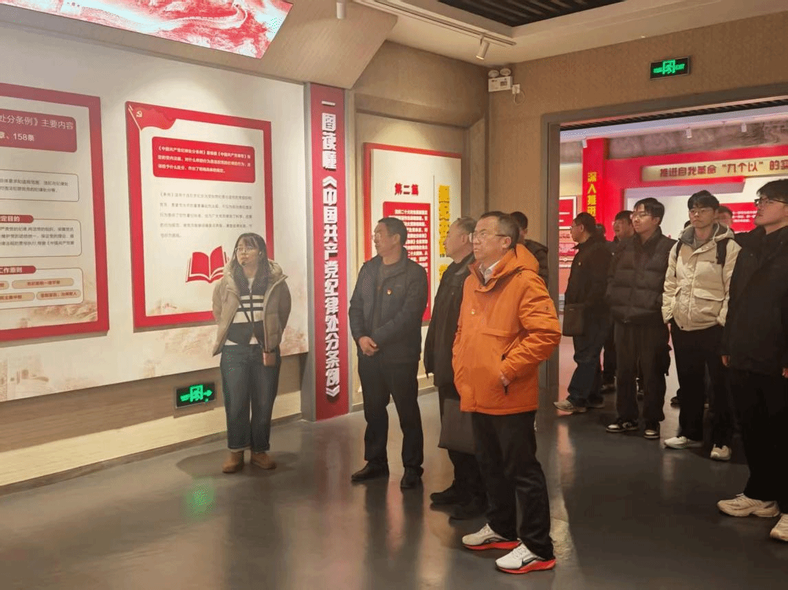 陈树人副主任与全体青年师生依次参观了“严明纪律 管党治党”、“以案促改 以案促治”、“牢记嘱托 感恩奋进”等六个主题展区。展区综合运用详实的图文史料、鲜活的典型案例剖析和生动的影像资料,系统回顾了党的十八大以来党风廉政建设和反腐败斗争所取得的辉煌成就与历史性变革,清晰阐释了党纪法规的核心要义与实践要求。一幅幅真实的画面、一个个深刻的教训,给在场的每一位青年师生带来了强烈的视觉冲击和思想震撼。